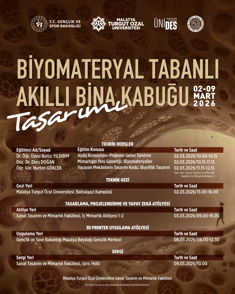 İç Mimarlık Topluluğu "BİYOMATERYAL TABANLI AKILLI BİNA KABUĞU TASARIMI" 5. ÜNİDES Projesi kapsamında 2-9 Mart 2026 tarihleri arasında;