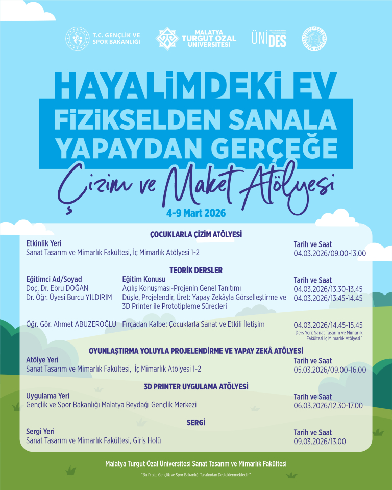 İç Miamarlık Bölümü Tasarım ve Teknoloji Topluluğu 5. ÜNİDES Projesi kapsamında "HAYALİMDEKİ EV: FİZİKSELDEN SANALA, YAPAYDAN GERÇEĞE ÇİZİM VE MAKET ATÖLYESİ" 4-9 Mart 2026 tarihleri arasında;