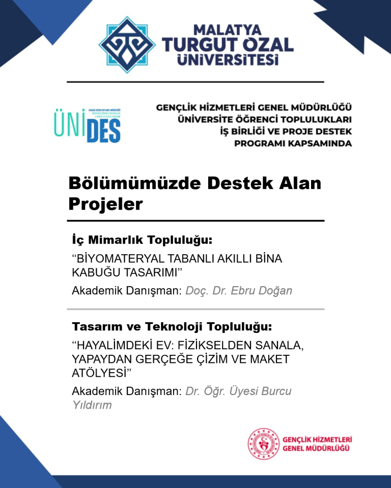 İç Mimarlık Bölümü İç Mimarlık Topluluğu tarafından yürütülen “Biyomateryal Tabanlı Akıllı Bina Kabuğu ...