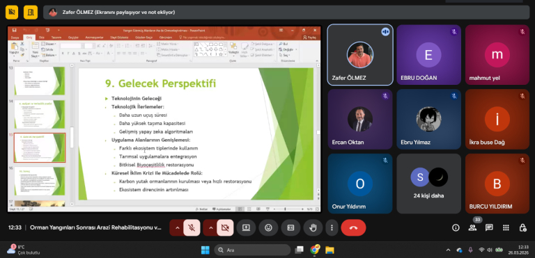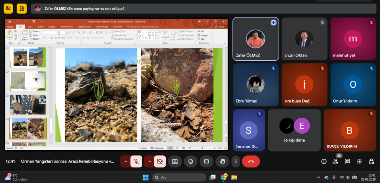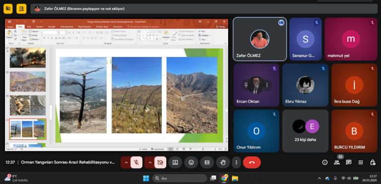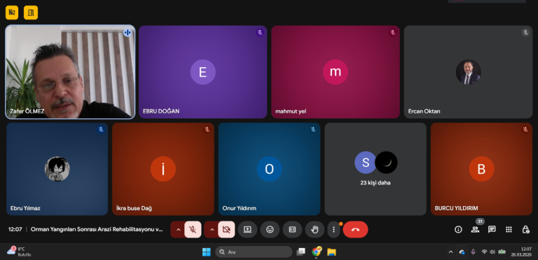 İç Mimarlık Bölümü tarafından düzenlenen online seminer etkinliklerinin sekizincisi, Artvin Çoruh Üniversitesi Orman Fakültesi Orman Mühendisliği Bölümü Emekli Öğretim Üyesi Prof. Dr. Zafer Ölmez’in katılımıyla gerçekleştirildi. “Orman Yangınları Sonrası Arazi Rehabilitasyonu ve İHA (İnsansız Hava Aracı) Teknolojileri” başlıklı seminerde, orman yangınları sonrasında zarar gören alanların yeniden hayata döndürülmesinde kullanılan yenilikçi yöntemler ele alındı.